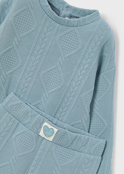 Conjunto acolchado perfecto para tu niña: sudadera de manga larga con cuello redondo y cierre de botones a presión en la espalda, más pantalón cómodo con cinturilla elástica. El exterior textil con efecto acolchado mantiene el calor mientras ella juega y se divierte. Diseño liso y versátil que combina con todo. ¡Comodidad y estilo en un solo look!